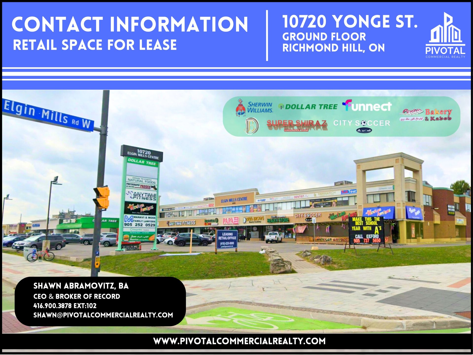 Elgin Mills Centre presents a rare opportunity to secure high-exposure a retail space along one of Richmond Hill's most active retail corridors.