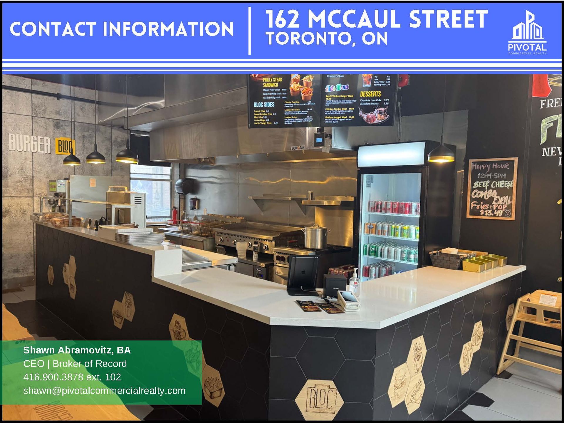 An incredible opportunity to own Burger Bloc, a fully equipped and turnkey quick service restaurant in the heart of Downtown Toronto's bustling medical and university district.