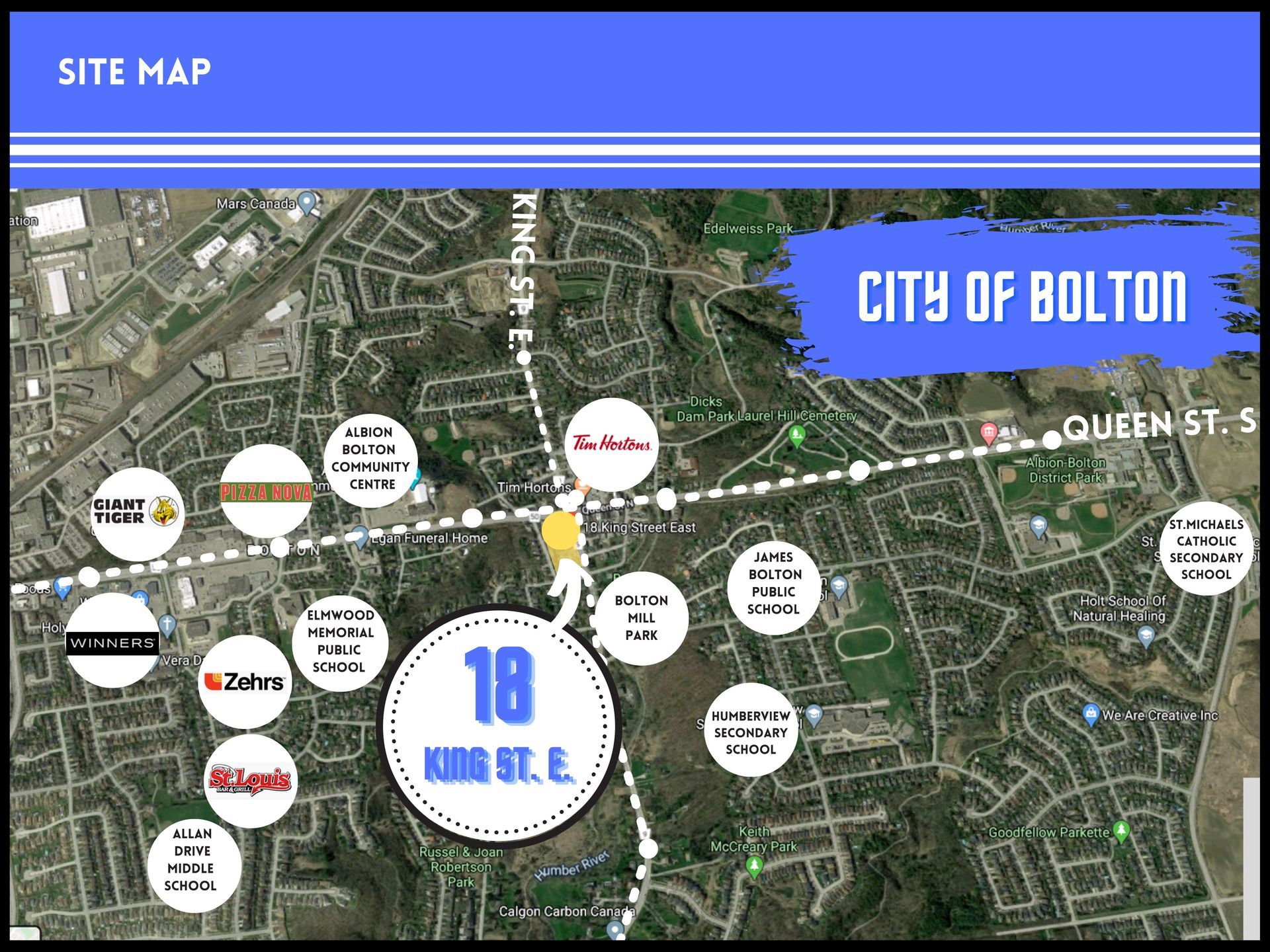 - Located at the busy intersection of Queen St. S. & King St. E., adjacent to CIBC