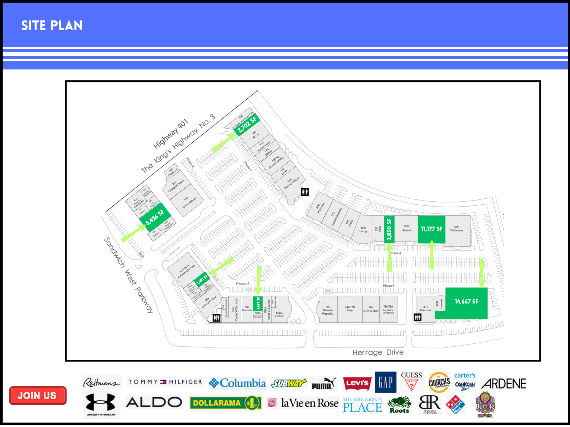 - Unit 660: 11,177 SF (adjacent to Dollarama)